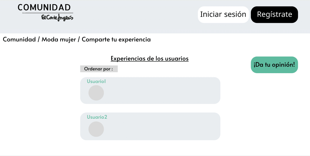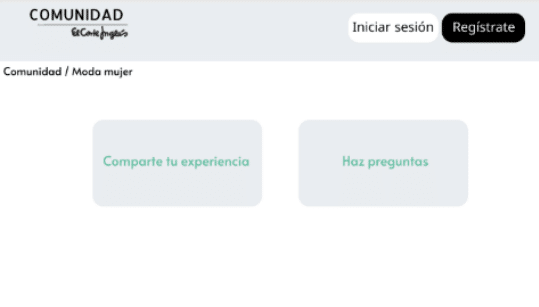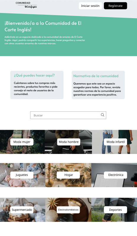 Este prototipo se basa en una representación visual y funcional más cercana al producto final de la sección El Corte Inglés Community.